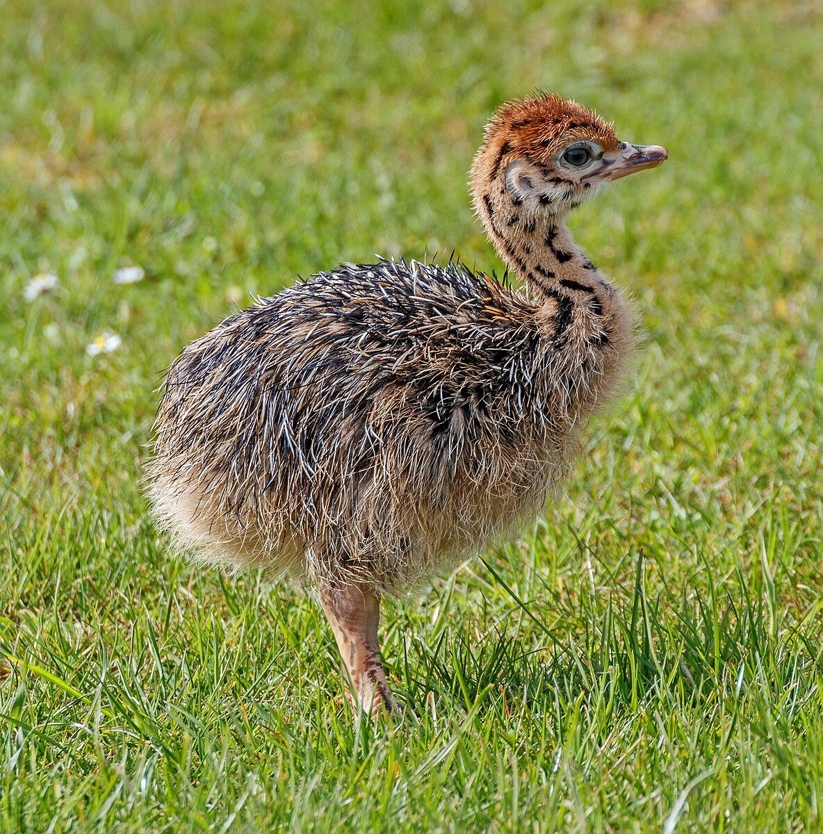 A fiókák tüskés, szürkésbarna pehellyel kelnek ki és körülbelül csirke méretűek. Havonta 30 centimétert nőnek, 4 hónap után barna tollakat növesztenek. Hat hónapos korukra a fiatal struccok már majdnem olyan magasak, mint a szüleik. Ivarérettségüket 3-4 éves korukban érik el, ekkor a hímek feltűnő fekete-fehér tollazatot növesztenek, míg a nőstények tollazata továbbra is barna marad. |