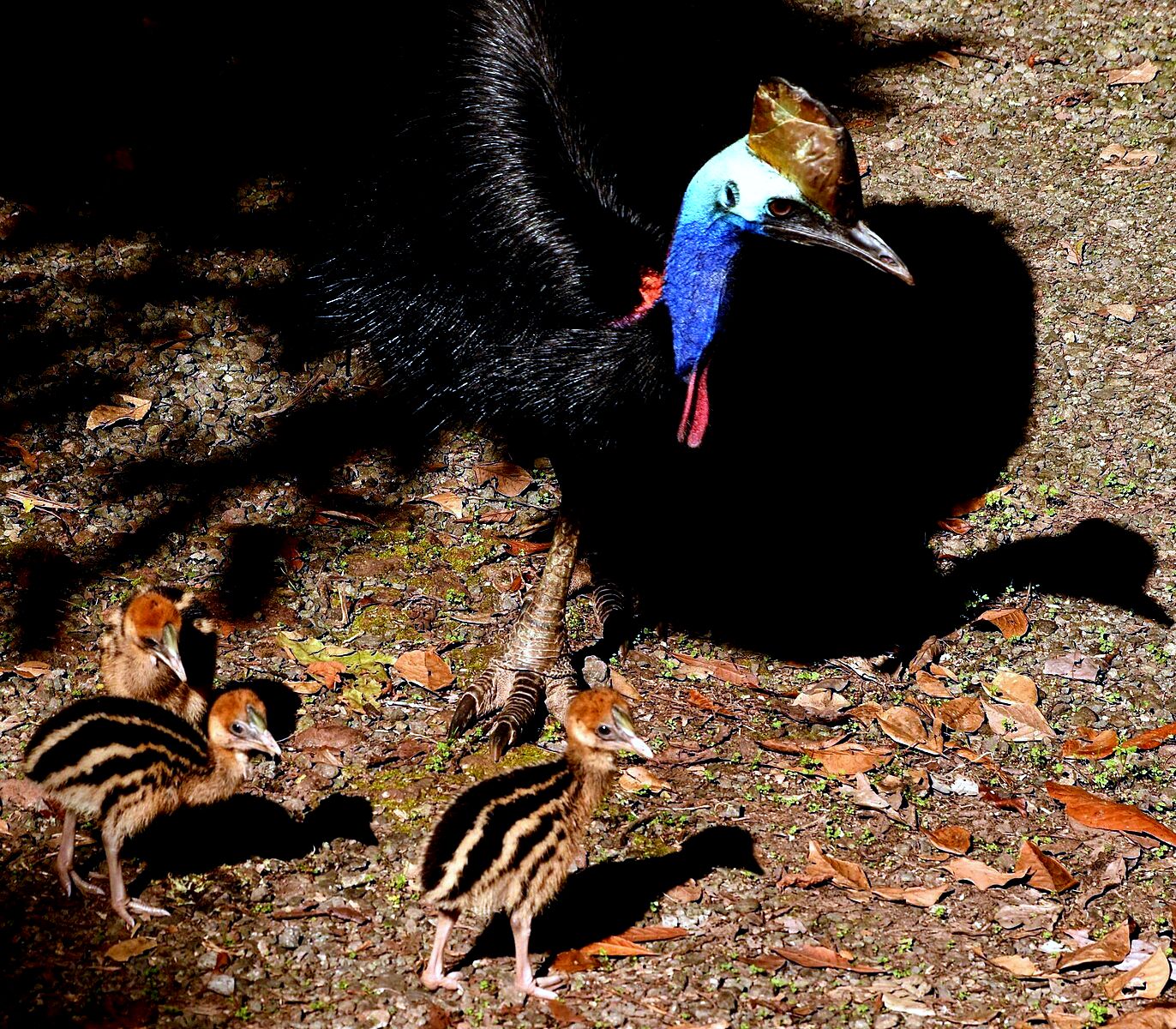 Észak-Ausztráliában, Új-Guineán és a környező szigeteken élnek. Magassága 150-180 cm, súlya 34-70 kg. A fején - sisaktarajhoz hasonló - jellegzetes szarukinövése van. Durva, szőrszerű tollai feketék, arca zöldeskék, a fej hátulsó része zöld, a nyak elől ibolyás, hátul vörös, az írisz vörösbarna, csőre rövid. |