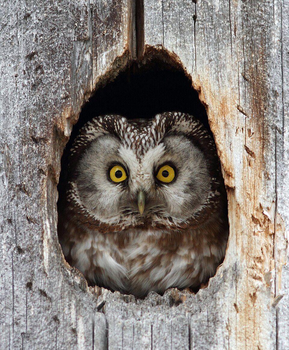 Rendkívül magabiztos, kevés vagy semmilyen félelmet nem mutat az emberekkel szemben és csak akkor repül el, ha 3-5 méteren belül megközelítik. Éjszaka, nesztelenül cserkészi be áldozatát. Főként pocokkal és más emlősökkel - egerekkel, mókusokkal, vakondokkal, cickányokkal és denevérekkel - táplálkozik, de madarak, kisebb kétéltűek, rovarok is szerepelnek étrendjében. A baglyok monogámok, egyéves koruk után évente egyetlen fészket nevelnek. A költés hosszú udvarlási folyamattal kezdődik, amelynek során a hímek akár 102 napig is udvarolnak, február közepétől április közepéig, a környezeti tényezőktől, a zsákmány mennyiségétől, elérhetőségétől és az időjárástól függően. |