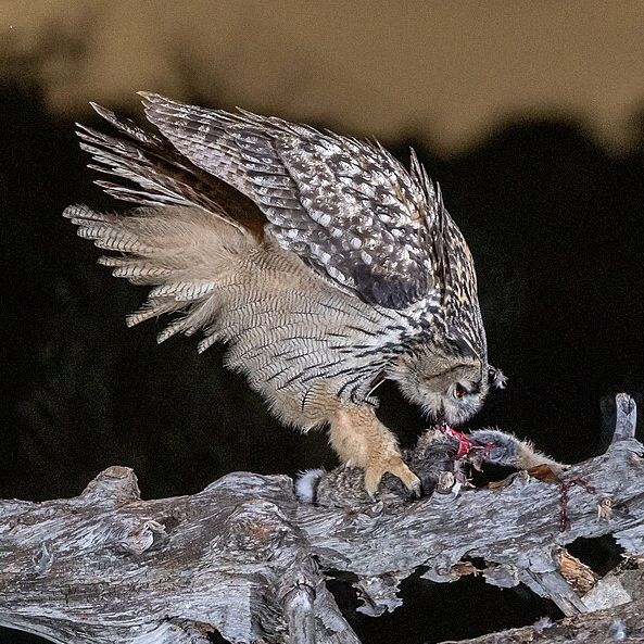 Félelem nélkül védi fészkét és fiókáit, éles karmaival a betolakodó fejére támad. Mivel repülése csendes, előfordulhat, hogy csak akkor veszik észre, amikor már túl késő ahhoz, hogy elkerüljék a veszélyt. Kutyákat, macskákat és embereket is megtámadhatnak, néha mindenféle provokáció nélkül.