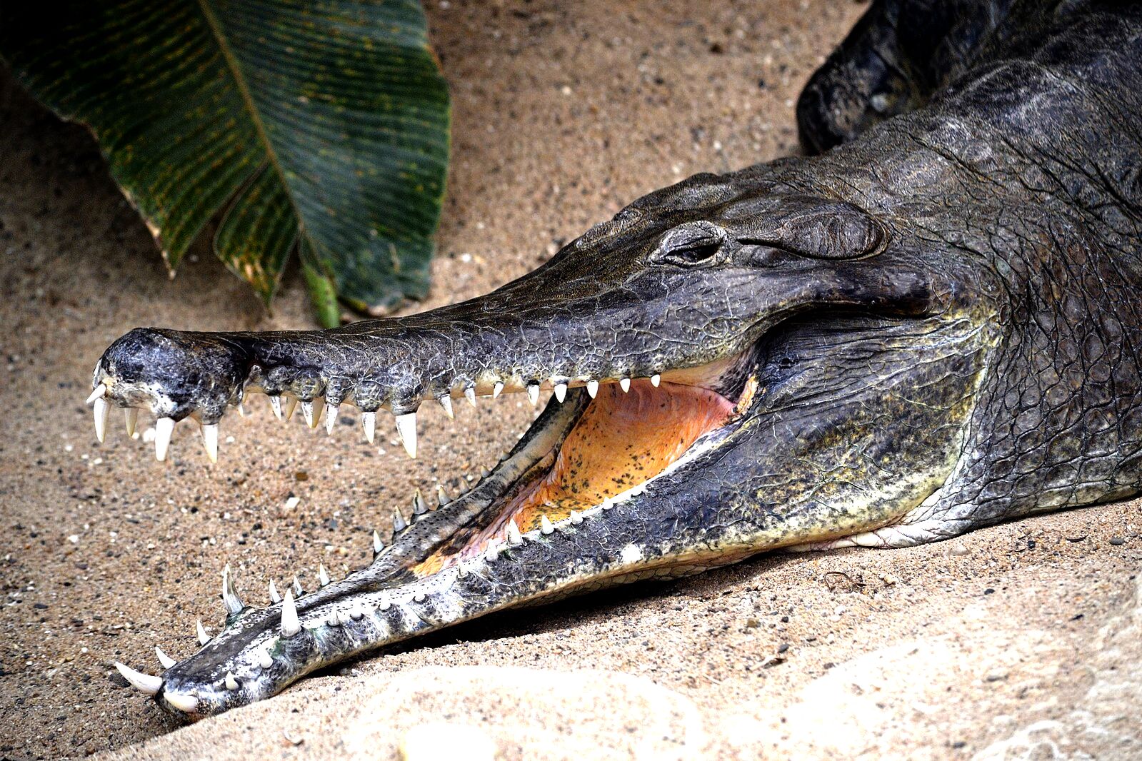 A pofa meglehetősen hosszú és karcsú, némileg az afrikai páncélos krokodiléhoz hasonlít. |