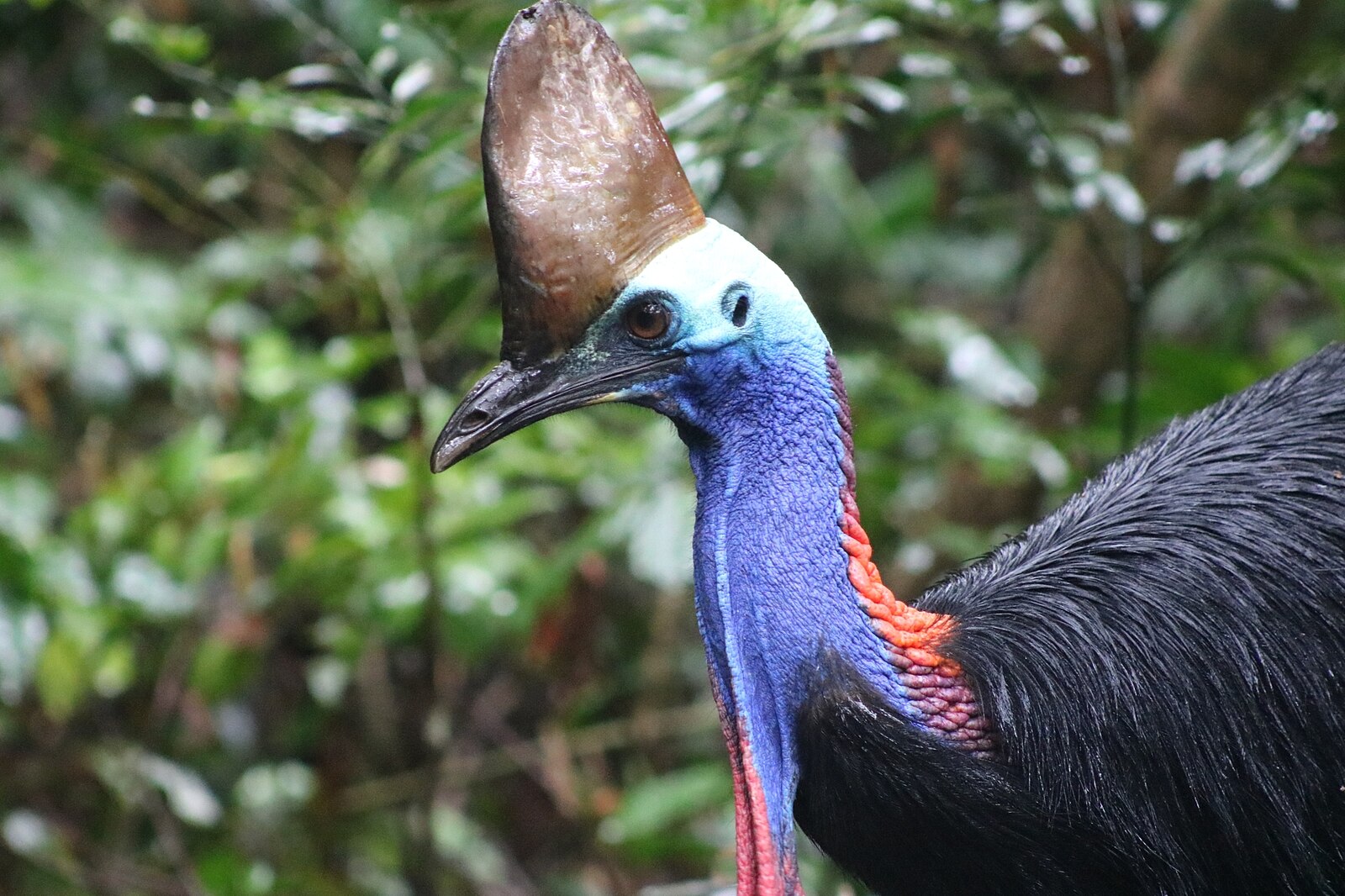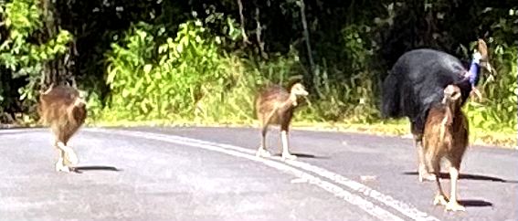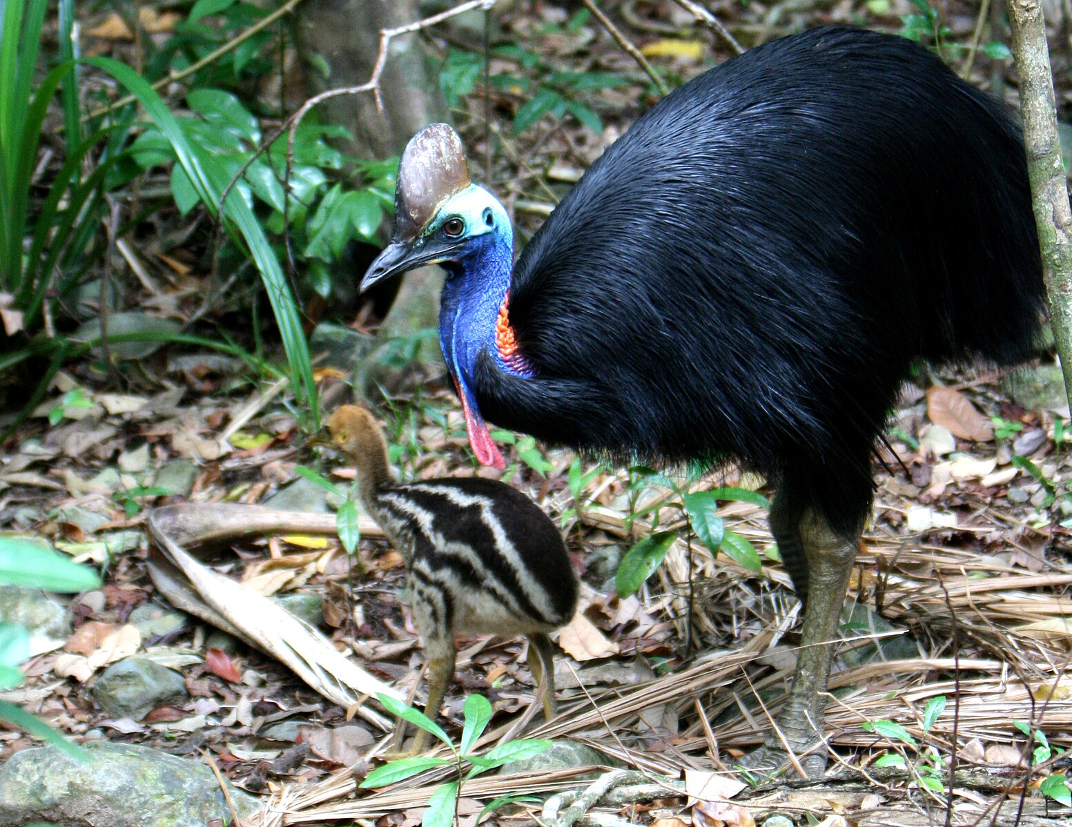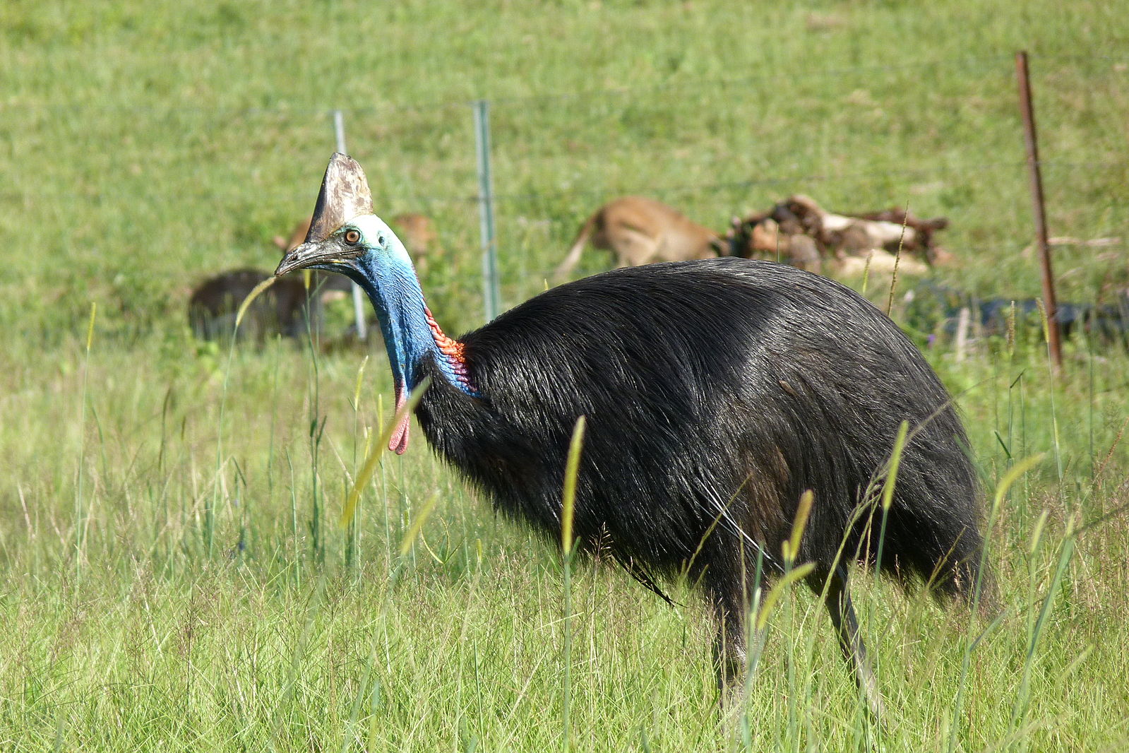 Észak-Ausztráliában, Új-Guineán és a környező szigeteken élnek. Magassága 150-180 cm, súlya 34-70 kg. A fején - sisaktarajhoz hasonló - jellegzetes szarukinövése van. Durva, szőrszerű tollai feketék, arca zöldeskék, a fej hátulsó része zöld, a nyak elől ibolyás, hátul vörös, az írisz vörösbarna, csőre rövid. |