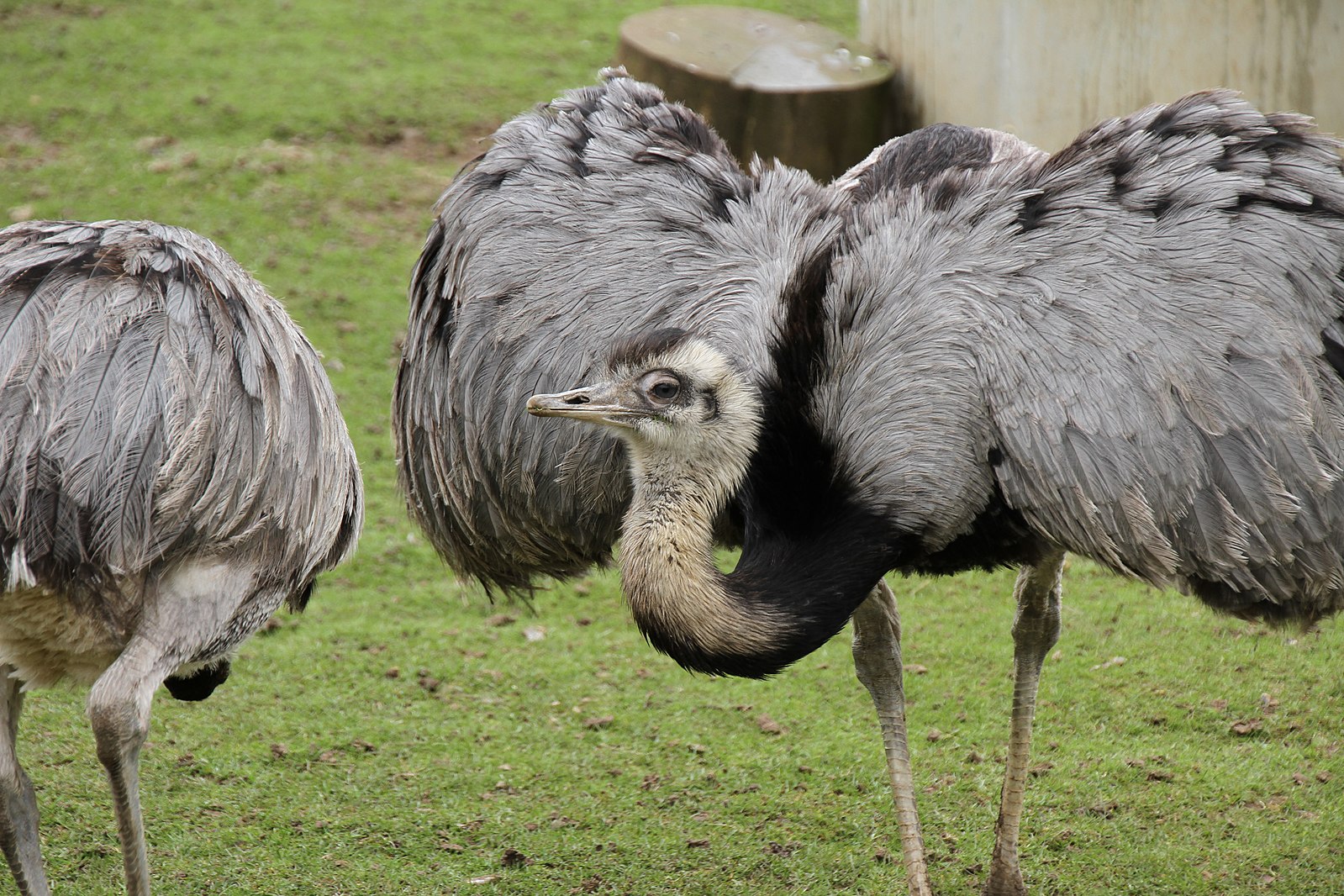 Első pillantásra olyan, mintha kis strucc lenne, de lényegesen karcsúbb. Testhossza 1,2-1,4 m, tömege csupán 20-27 kg. A kakas magassága a 2,5 métert is elérheti (átlagosan 1,5 méter). A kakas tollazata éppen olyan szerény, mint a tyúké, háta hamuszürke, a hasa piszkosfehér, nyaka és melle fekete. Fejének csupasz részei hússzínűek, csőre szürkésbarna, lába palaszürke. Dísztollai egyáltalán nincsenek |