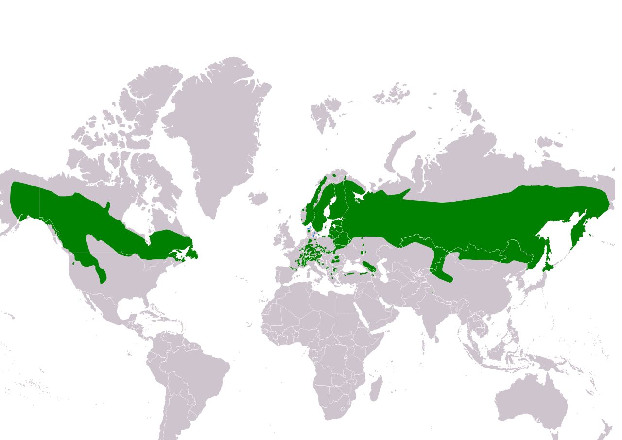Ez a faj Észak- és Közép-Európa erdőiben található, Szibériáig. Magyarországon alkalmi vendég, de inkább csak ritka kóborló. A tajga tűlevelű erdőiben és vegyes erdőkkel tarkított magasabb hegyvidéki régiókban található. Ezeken a területeken hűvösebb a hőmérséklet és több a csapadék, mint a közeli síkvidékeken. |