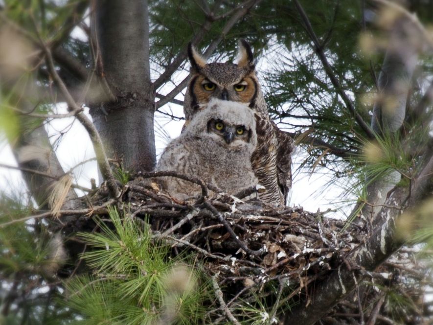 Félelem nélkül védi fészkét és fiókáit, éles karmaival a betolakodó fejére támad. Mivel repülése csendes, előfordulhat, hogy csak akkor veszik észre, amikor már túl késő ahhoz, hogy elkerüljék a veszélyt. Kutyákat, macskákat és embereket is megtámadhatnak, néha mindenféle provokáció nélkül.