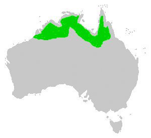 Elterjedési területe hatalmas, India keleti része, Srí Lanka, Banglades, Mianmar, Thaiföld, Laosz, Kambodzsa, Vietnám, Malajzia, Indonézia teljes területe, a Fülöp-szigetek, Új-Guinea szigete, Ausztrália északi partvidéke, a Palau szigetek, Mikronézia egyes részei, a Kókusz-szigetek, a Salamon-szigetek, Vanuatu. Legkeletebbre a Fidzsi-szigeteken él. |