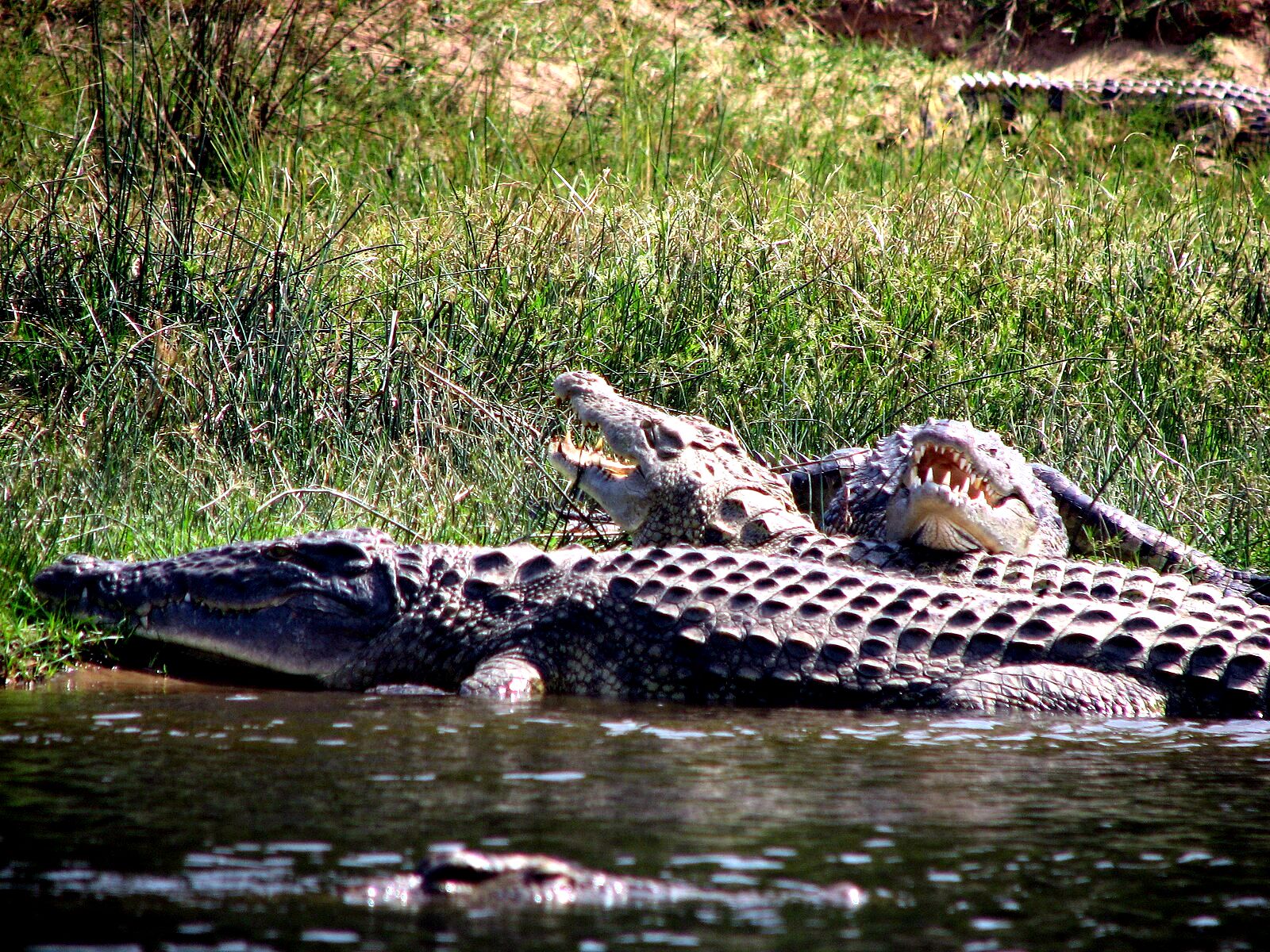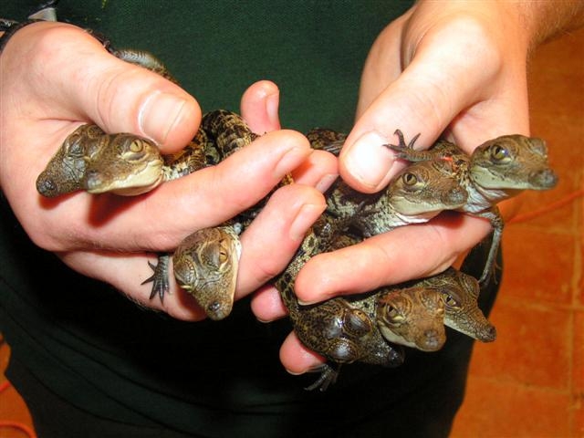 A kikelt kis krokodilok 30 centiméteresek. Az anya félelmetes fogaival összeszedi a kicsiket, a folyóhoz szállítja őket és akár két évig is védelmezi utódait. Csak néhány példány éli meg a felnőttkort. |